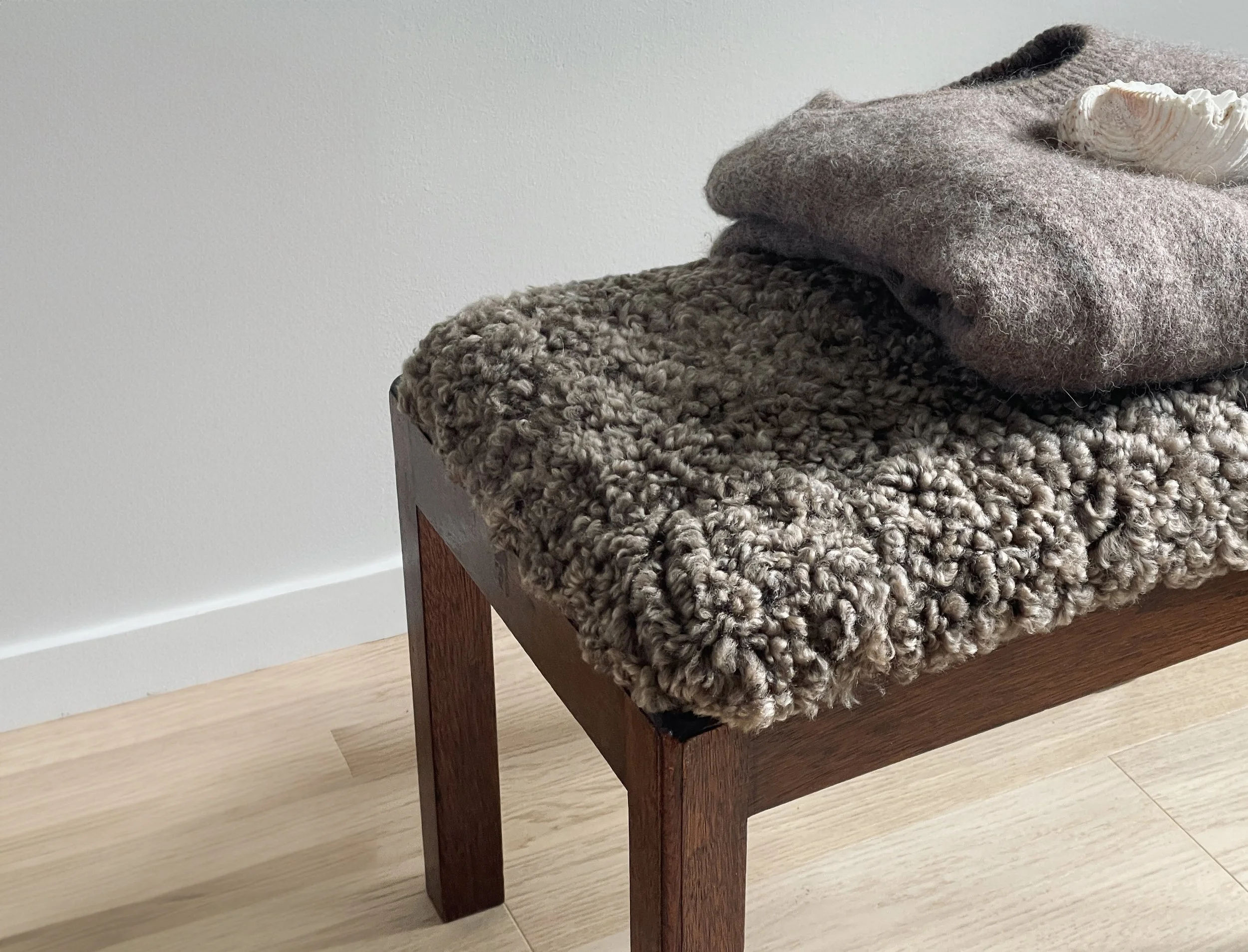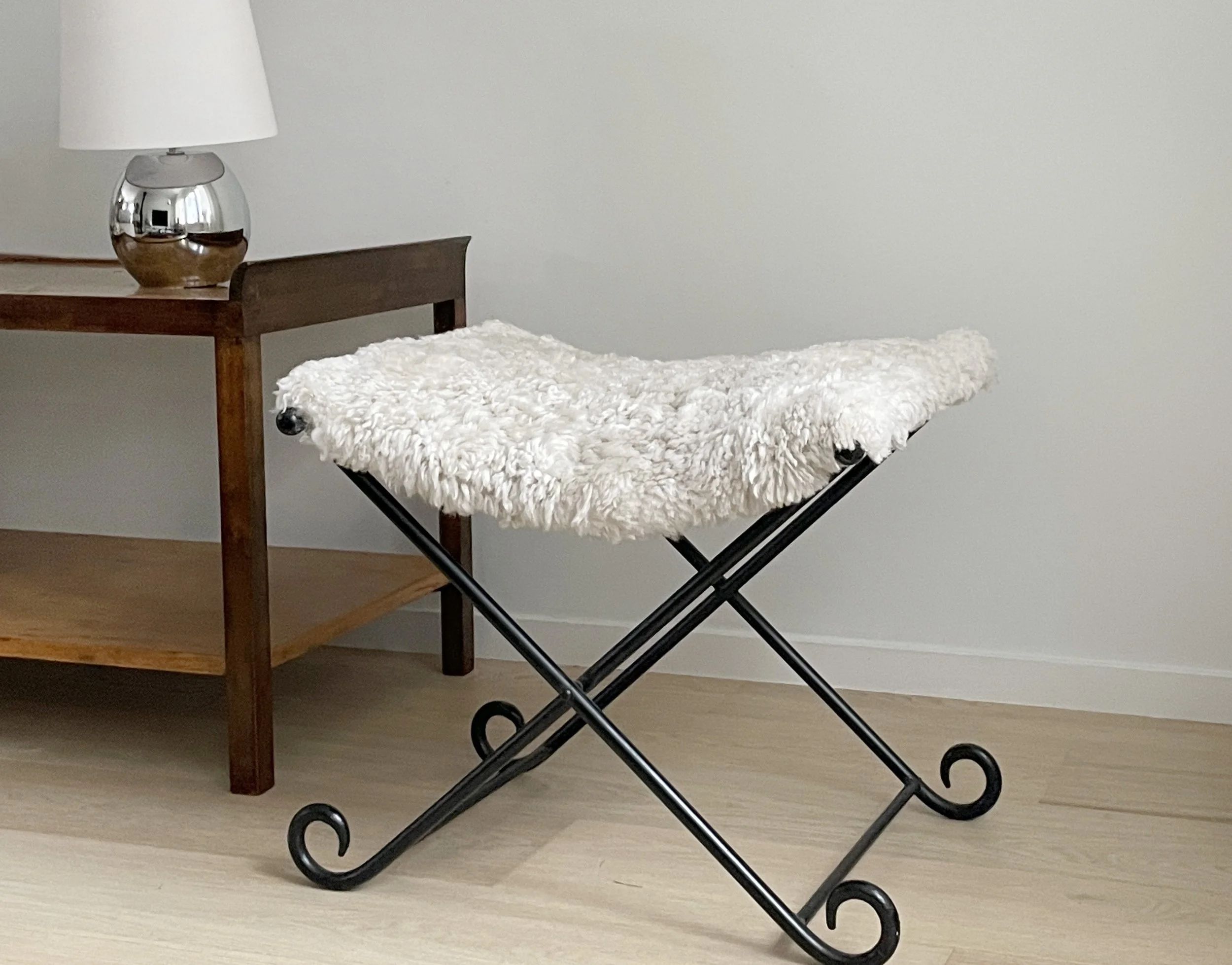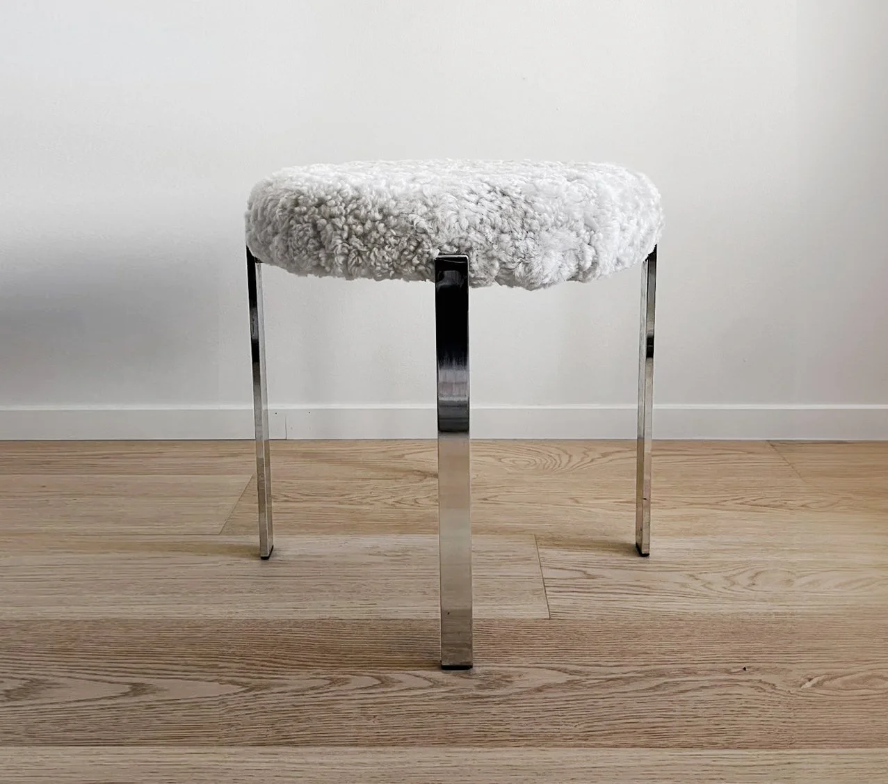 Contemporary Sheepskin Stool with Chrome Legs SOLD