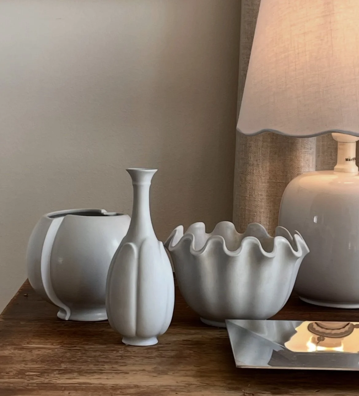 Wilhelm Kåge was a Swedish artist, painter and ceramist. Kåge is known for his ceramics for the Gustavsberg porcelain factory, where he was artistic director from 1917 to 1949. He designed around 30 different tableware pieces, as well as art ware, colorful faience, stoneware and various art ware series such as Carrara, Surrea and Våga. In 1942, Kåge, together with Stig Lindberg, started Gustavsberg's studio, which became a kind of aesthetic laboratory for art ware.