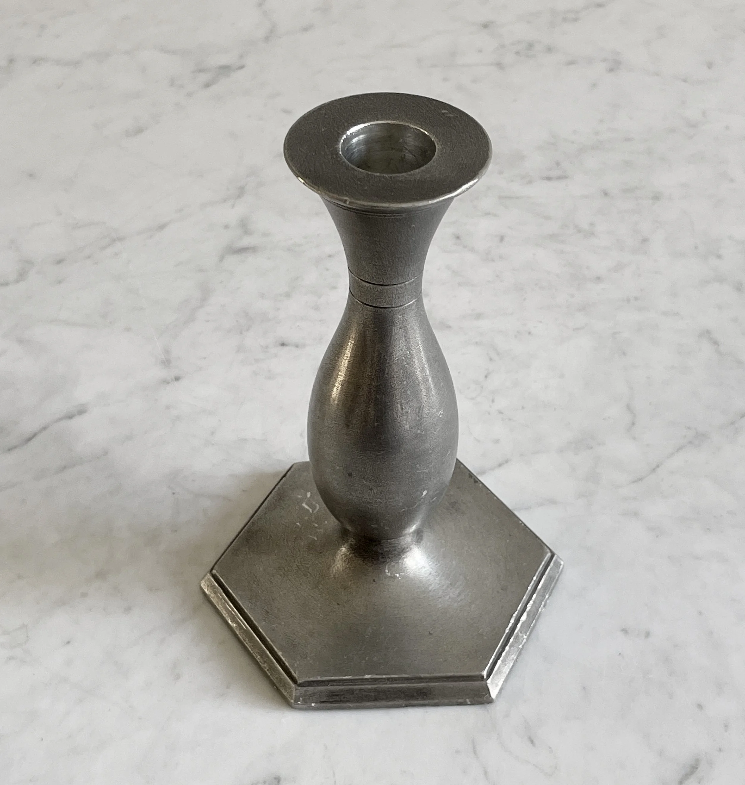 Candlestick in pewter, Just Andersen, DenmarkGreat vintage condition with signs of use.Height: 15 cm.600 SEK / Purchase this item