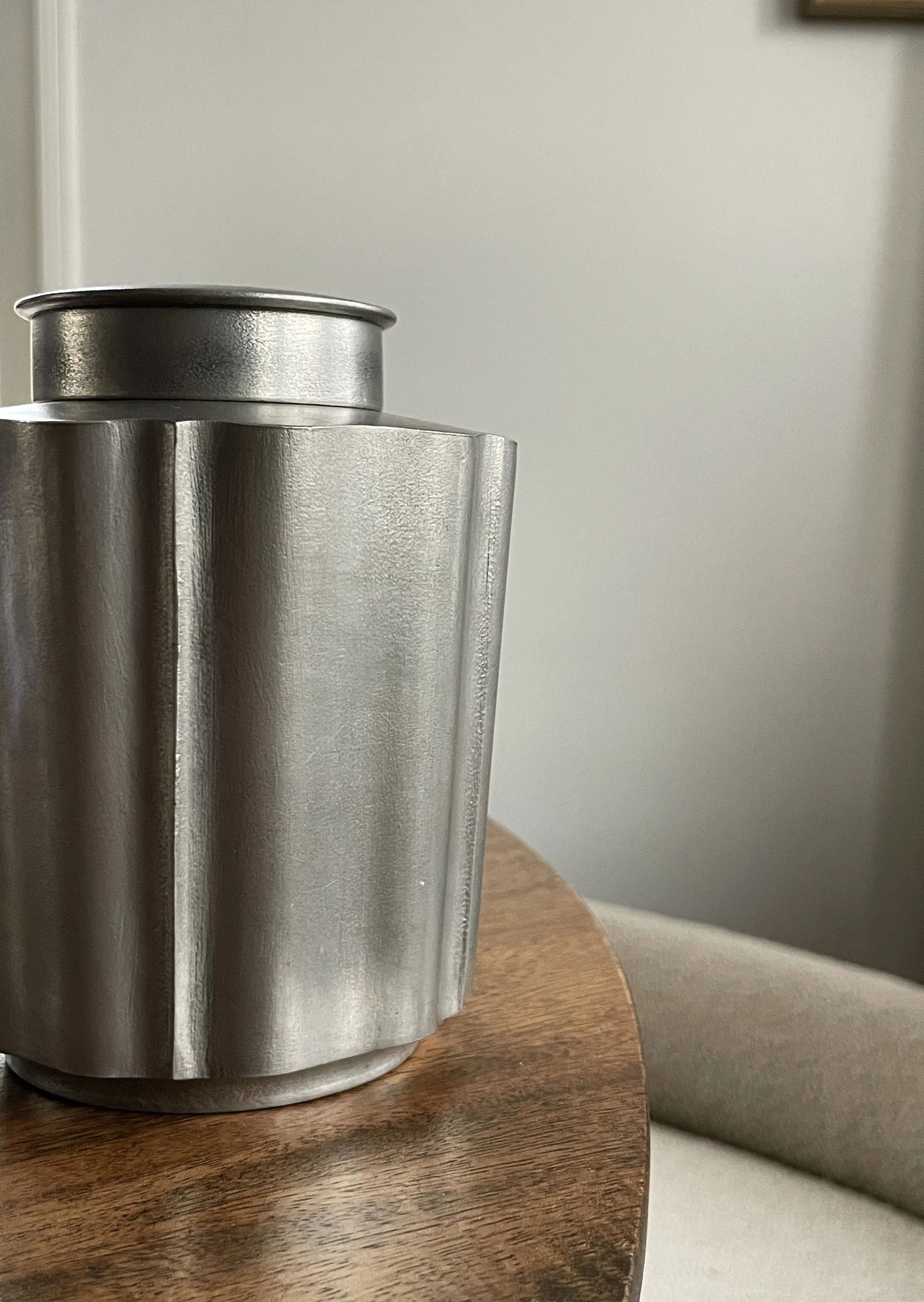 Edvin Ollers, tea tin in pewter, Sweden, 1938