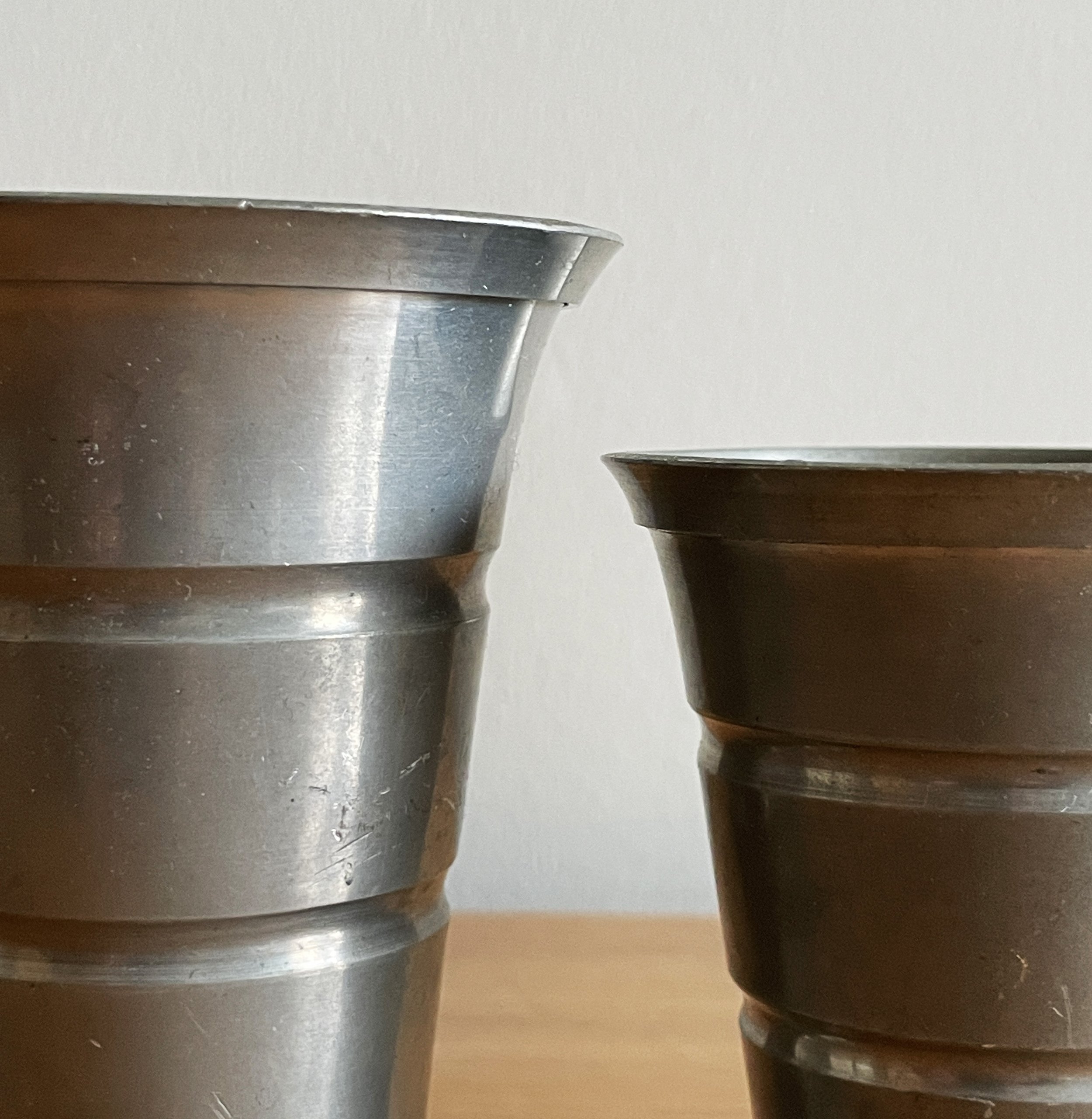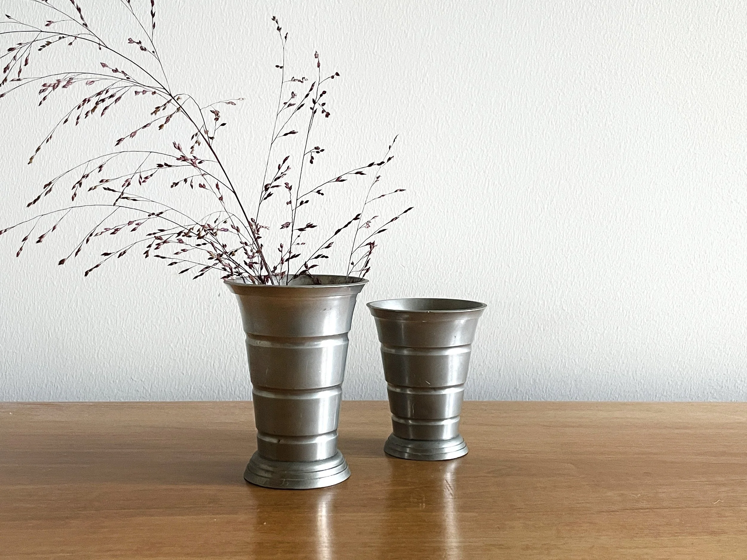 Vases by Just Andersen, pewterTwo sizes. Great vintage condition with signs of use.Diameter 5 cm, hight: 11,5 cm, 800 SEK / Purchase this item