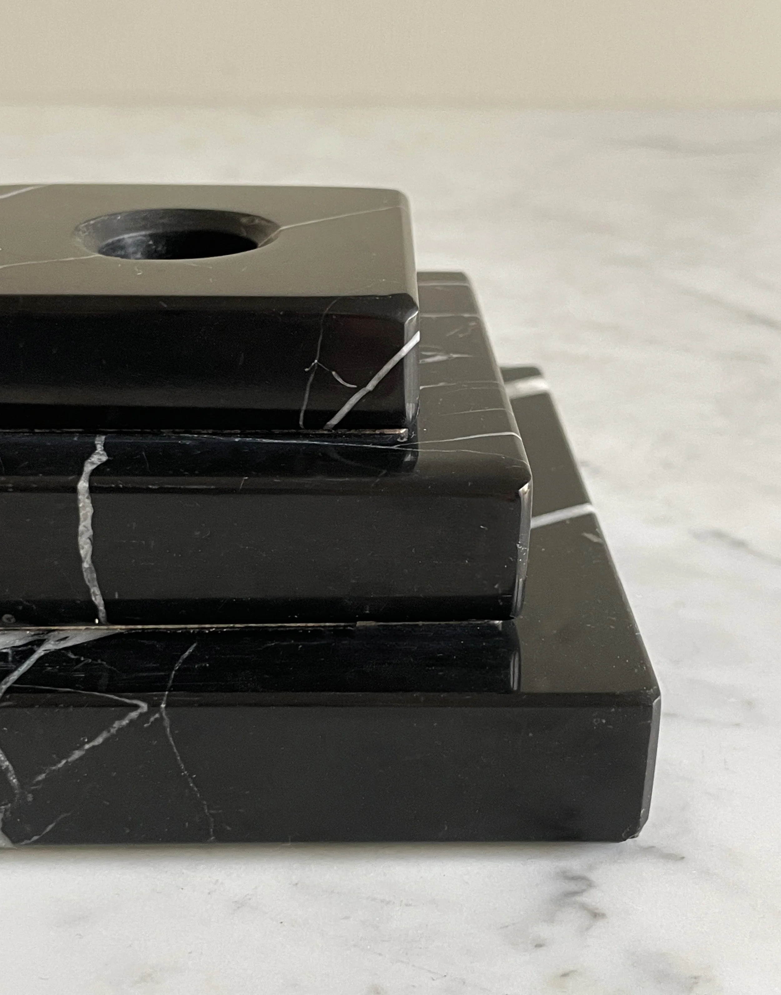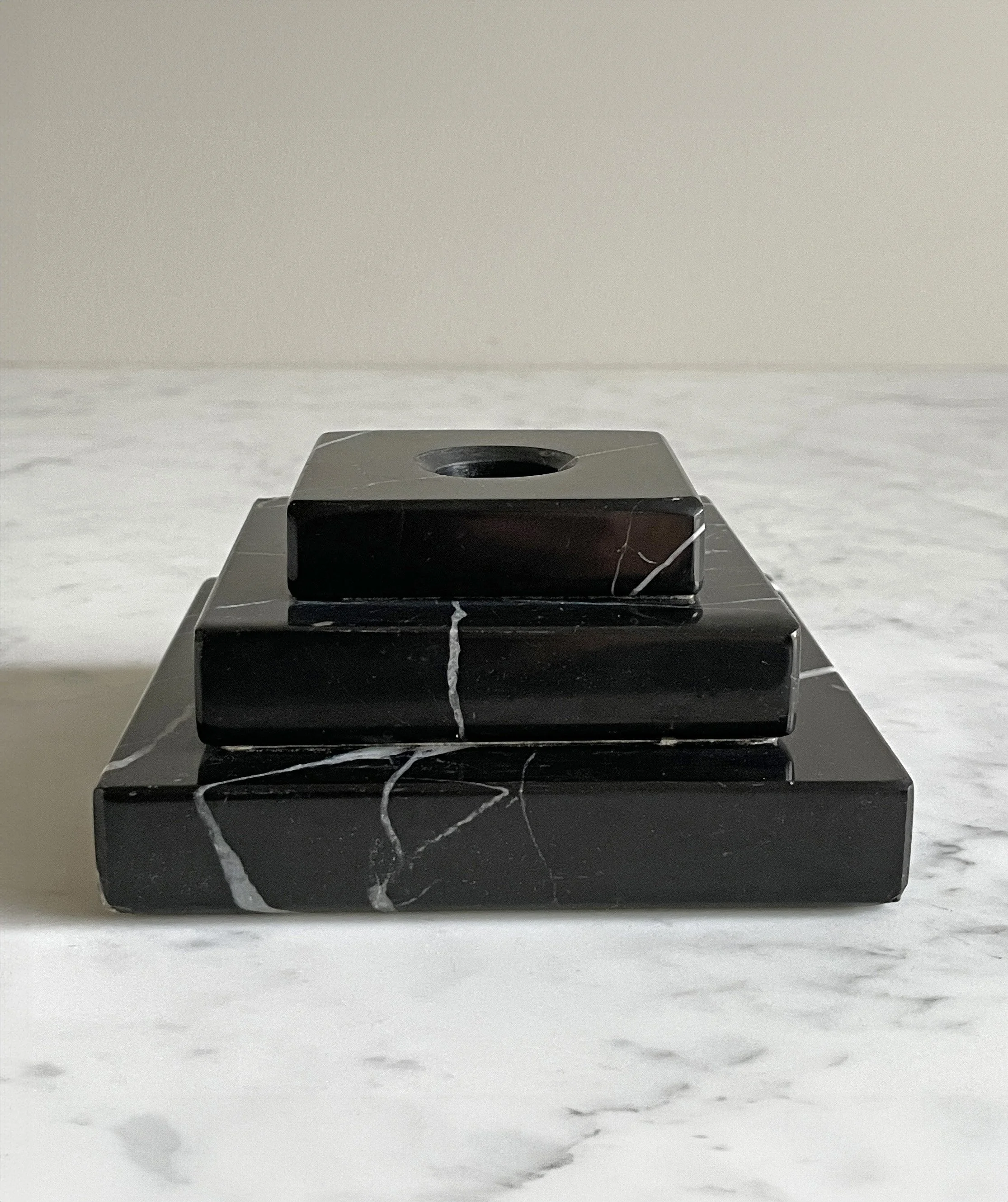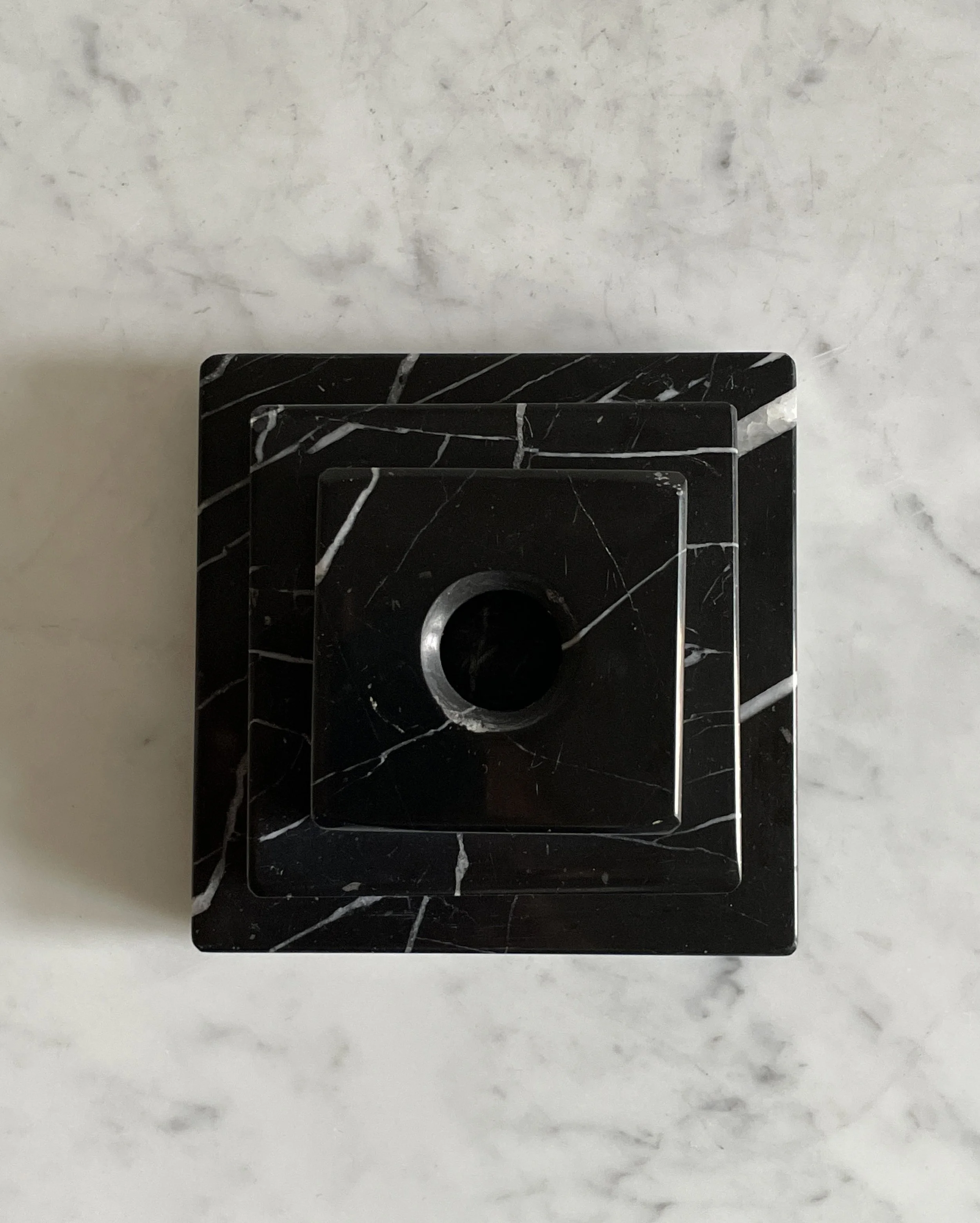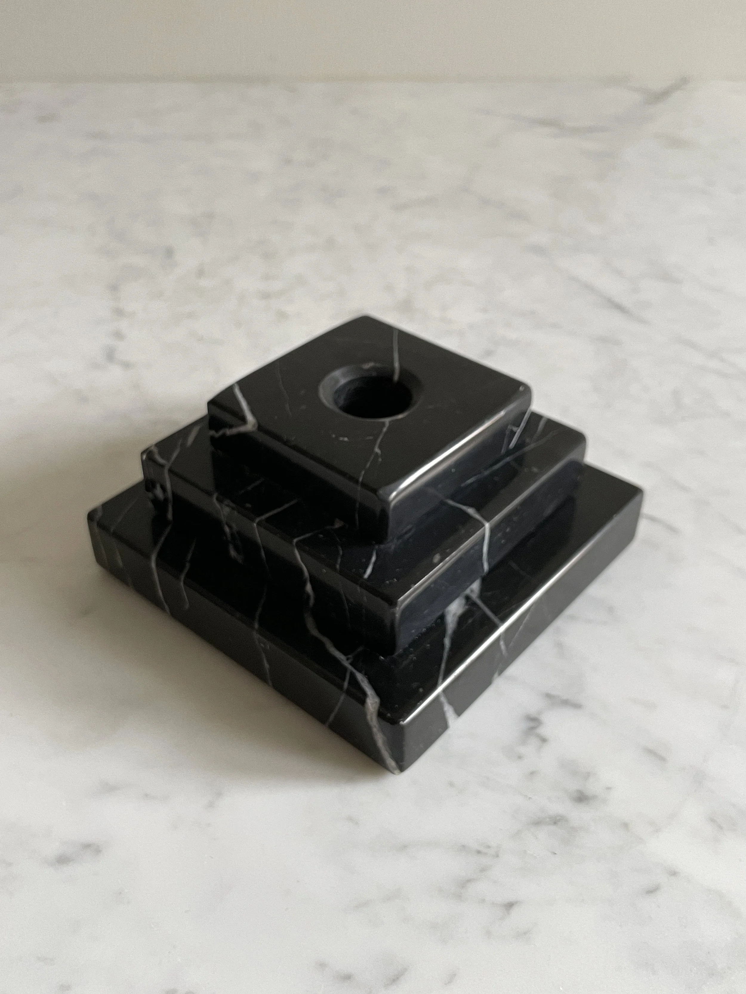 Candlestick, black marble, Art DecoGreat vintage condition with minimal signs of use.Length: 11 cm, width 11 cm, height: 6 cm.900 SEK / Purchase this item