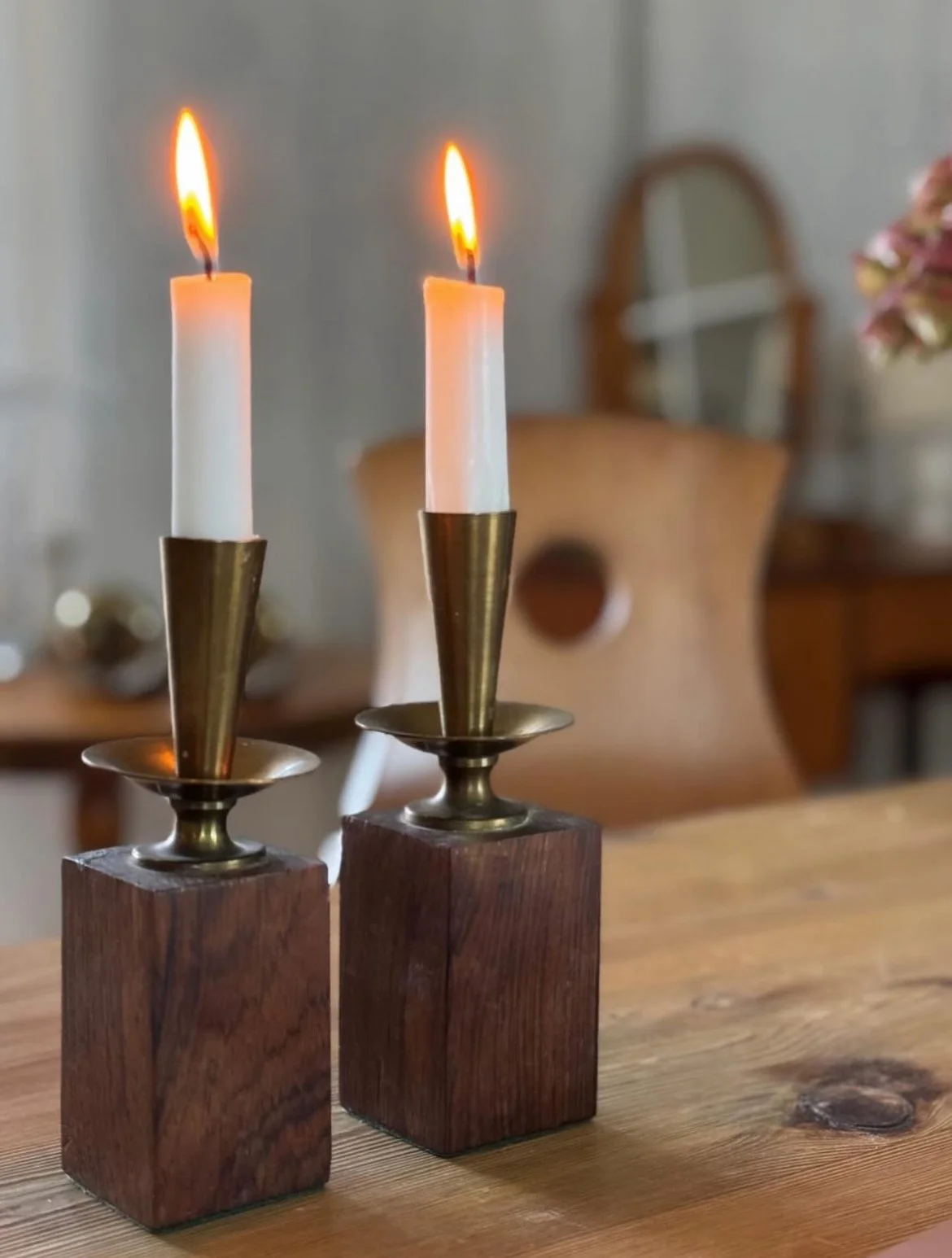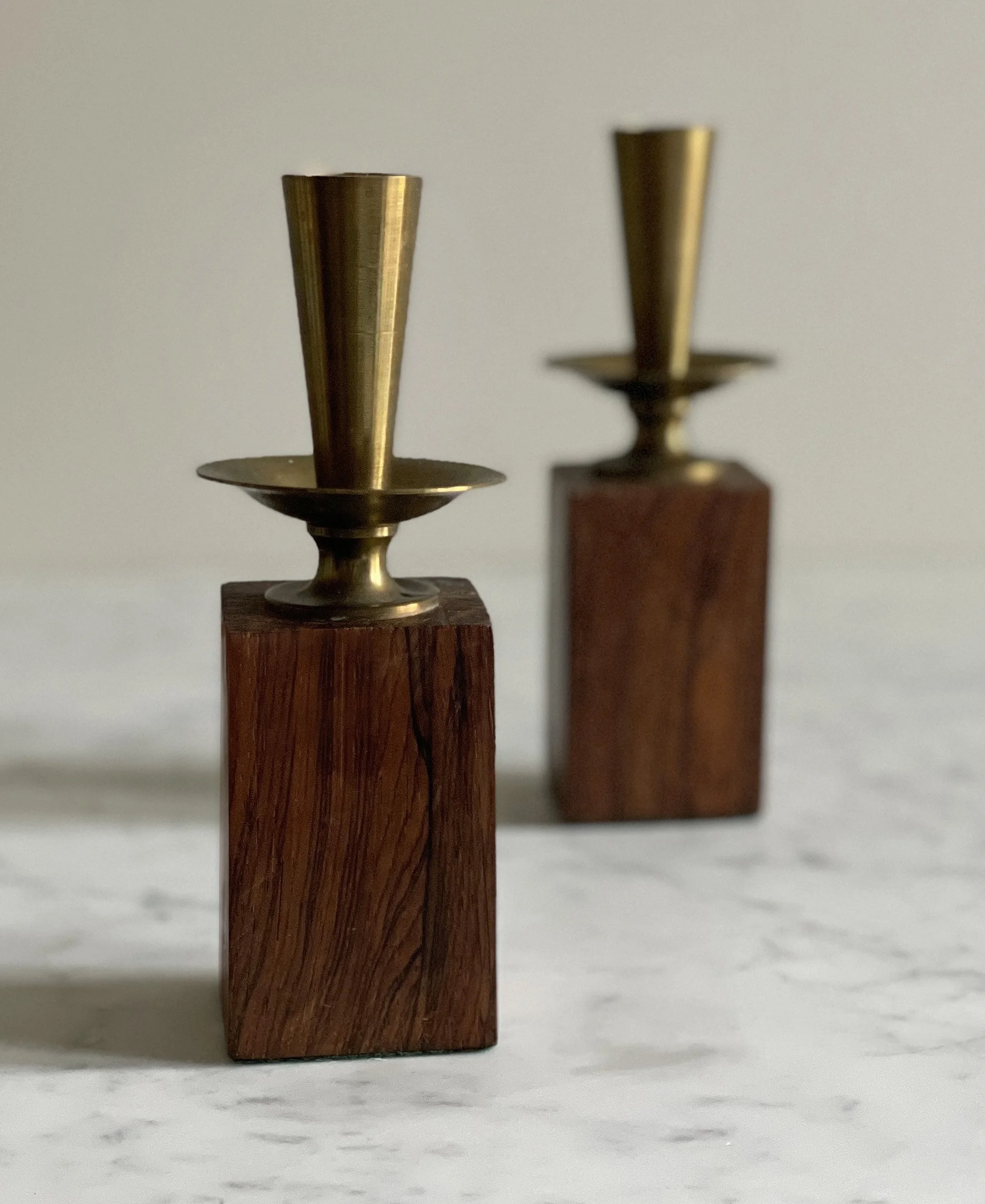 Set of Candle holders in brass and jacaranda