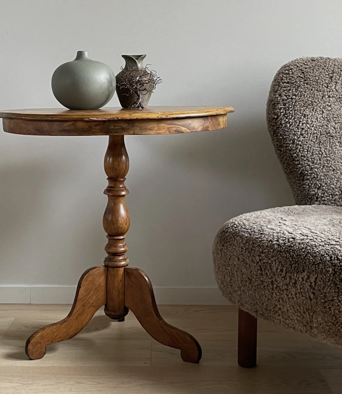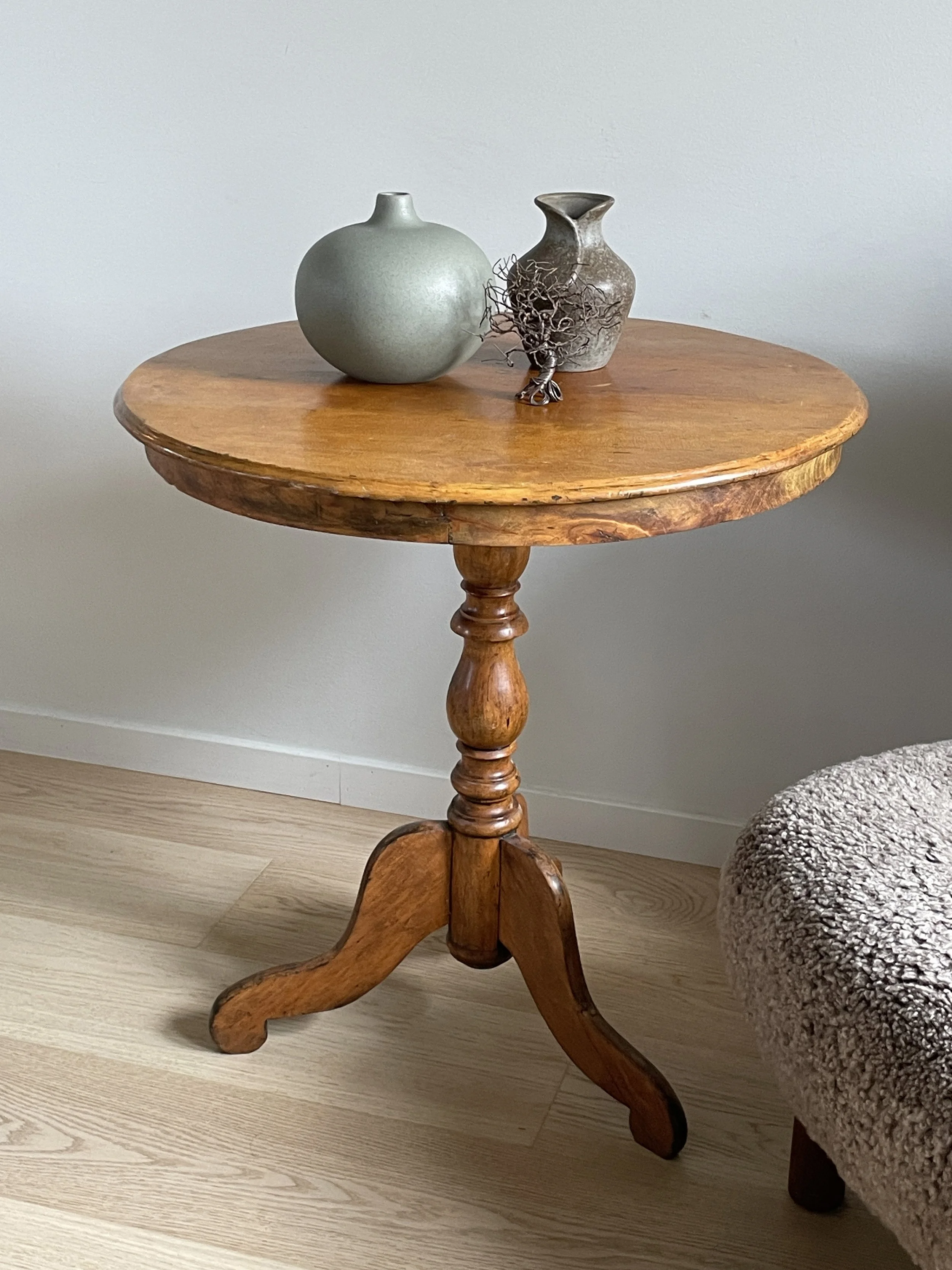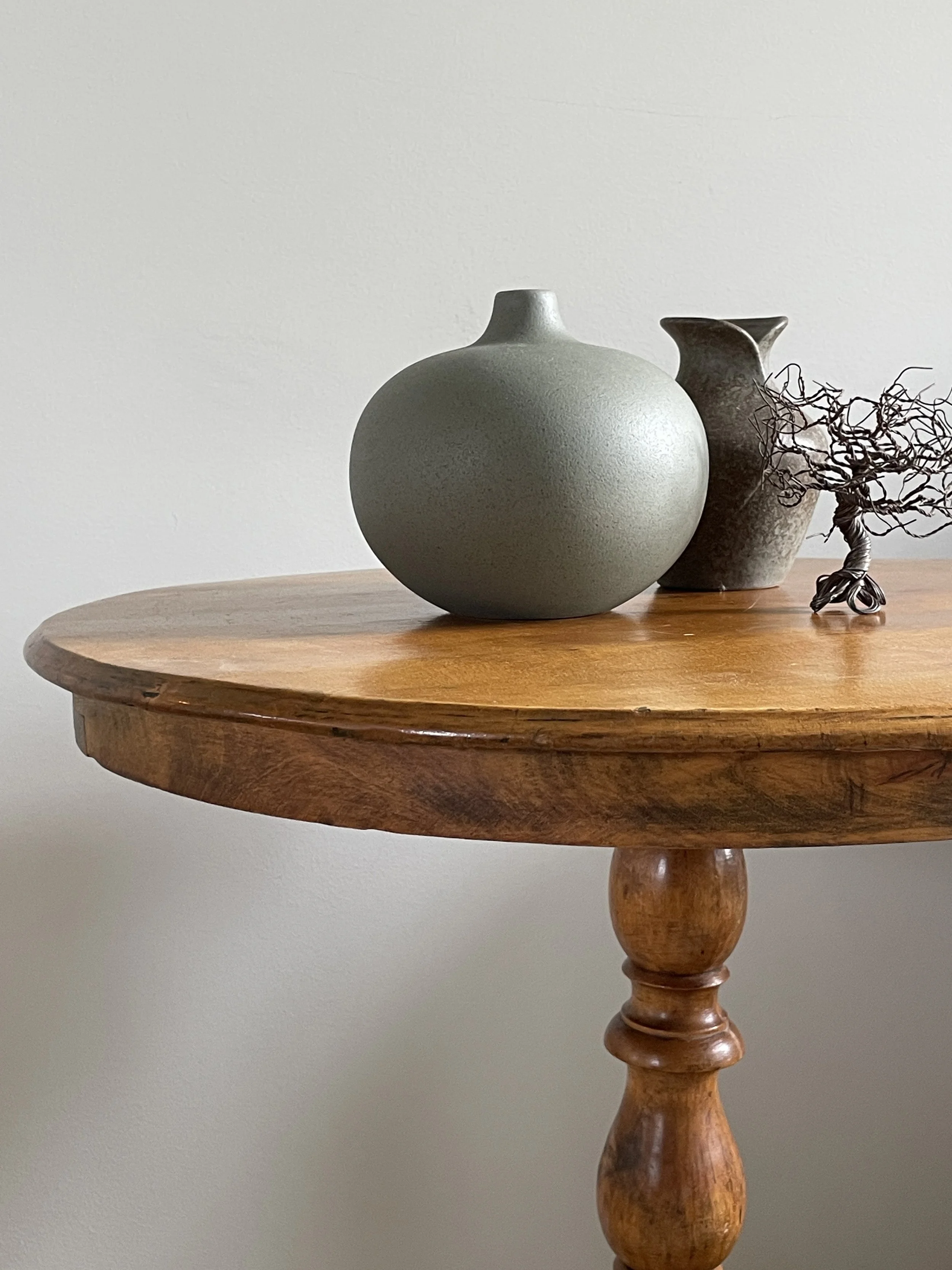 This antique pine pedestal table brings timeless character and natural warmth to any space. The golden pine surface has developed a lovely patina over the years. Perfect as a side table in your living room, a bedside table, or a decorative accent in an entryway, it adds a touch of vintage soul wherever it stands. Great vintage condition with signs of use.