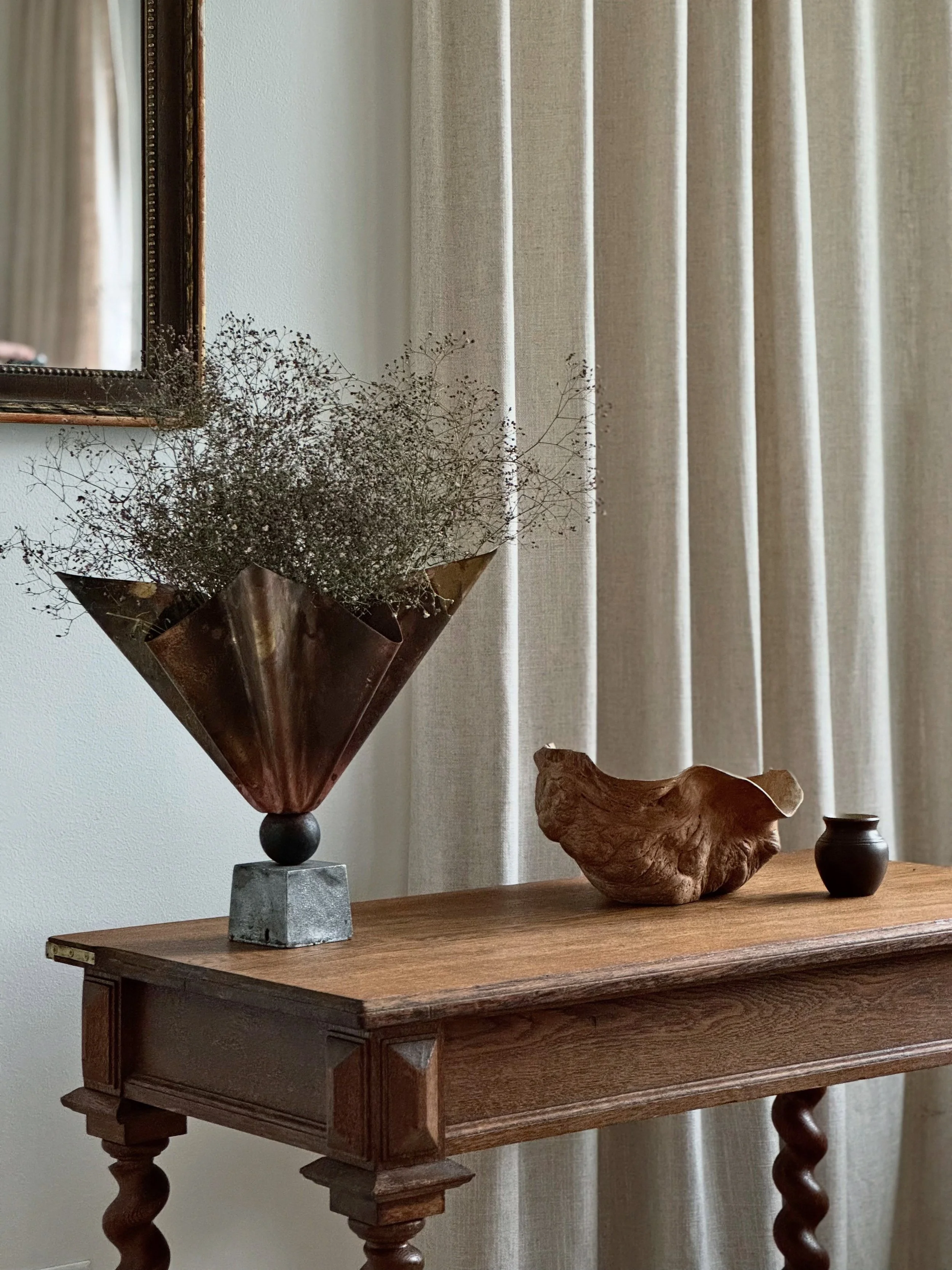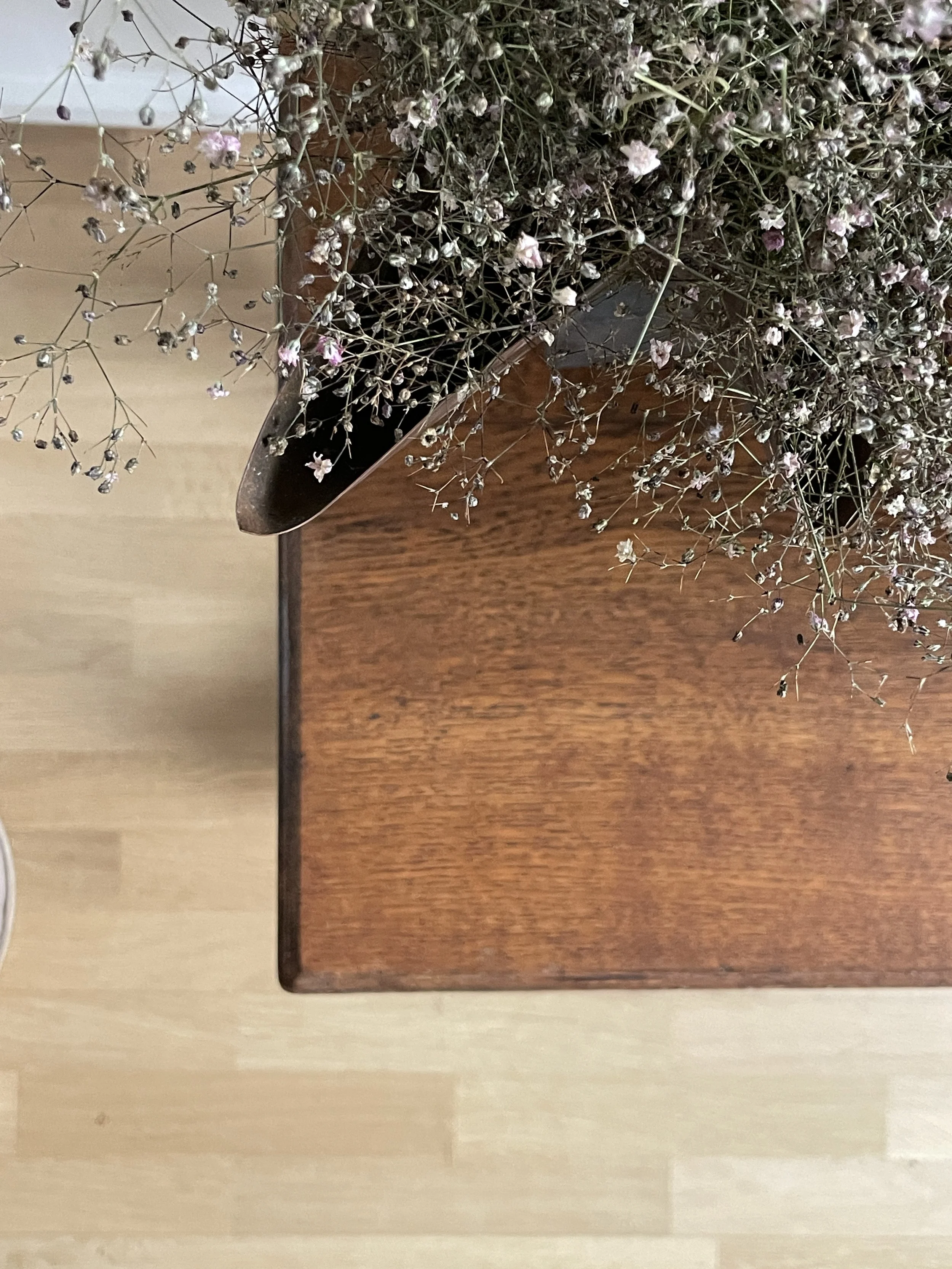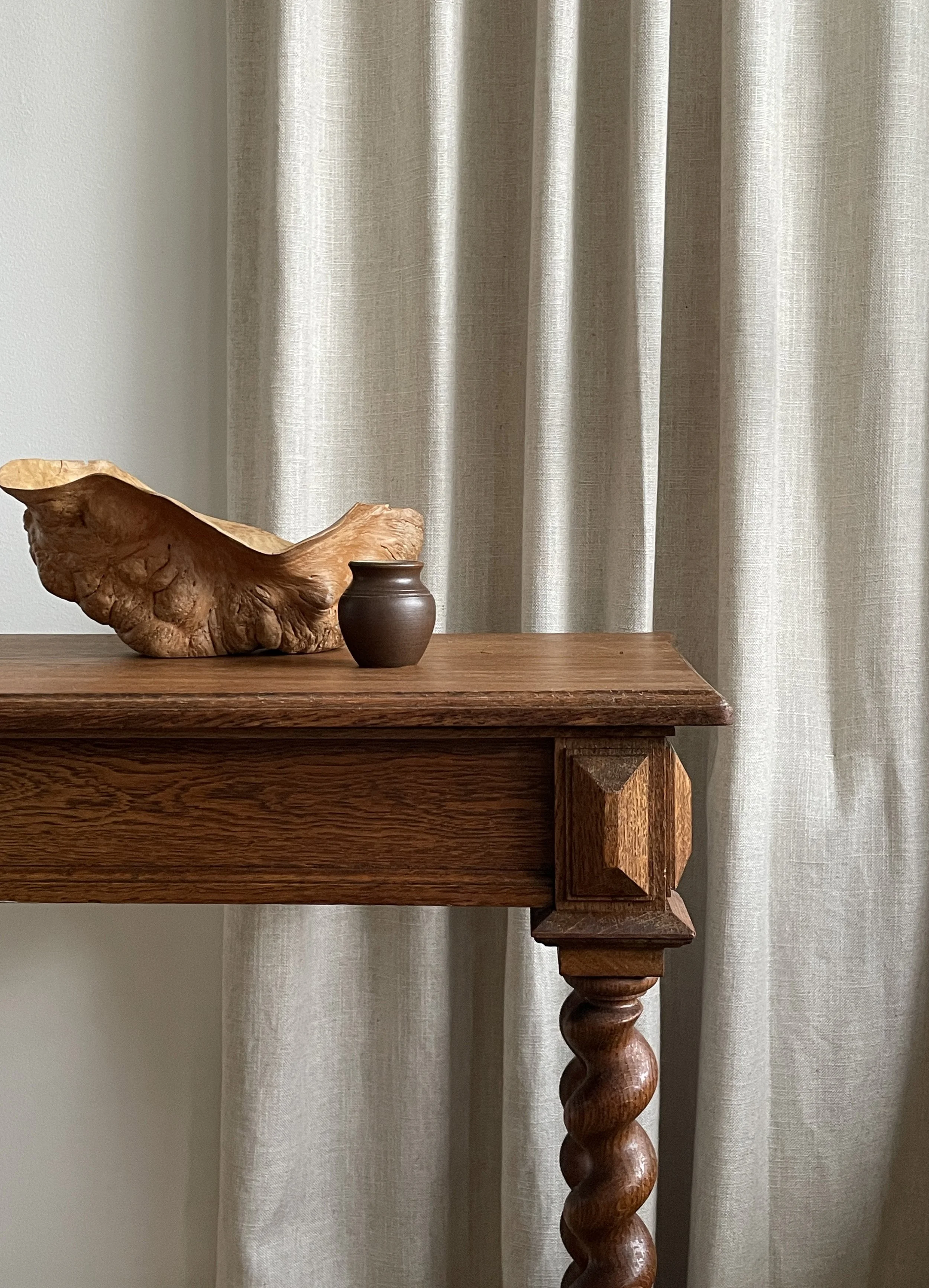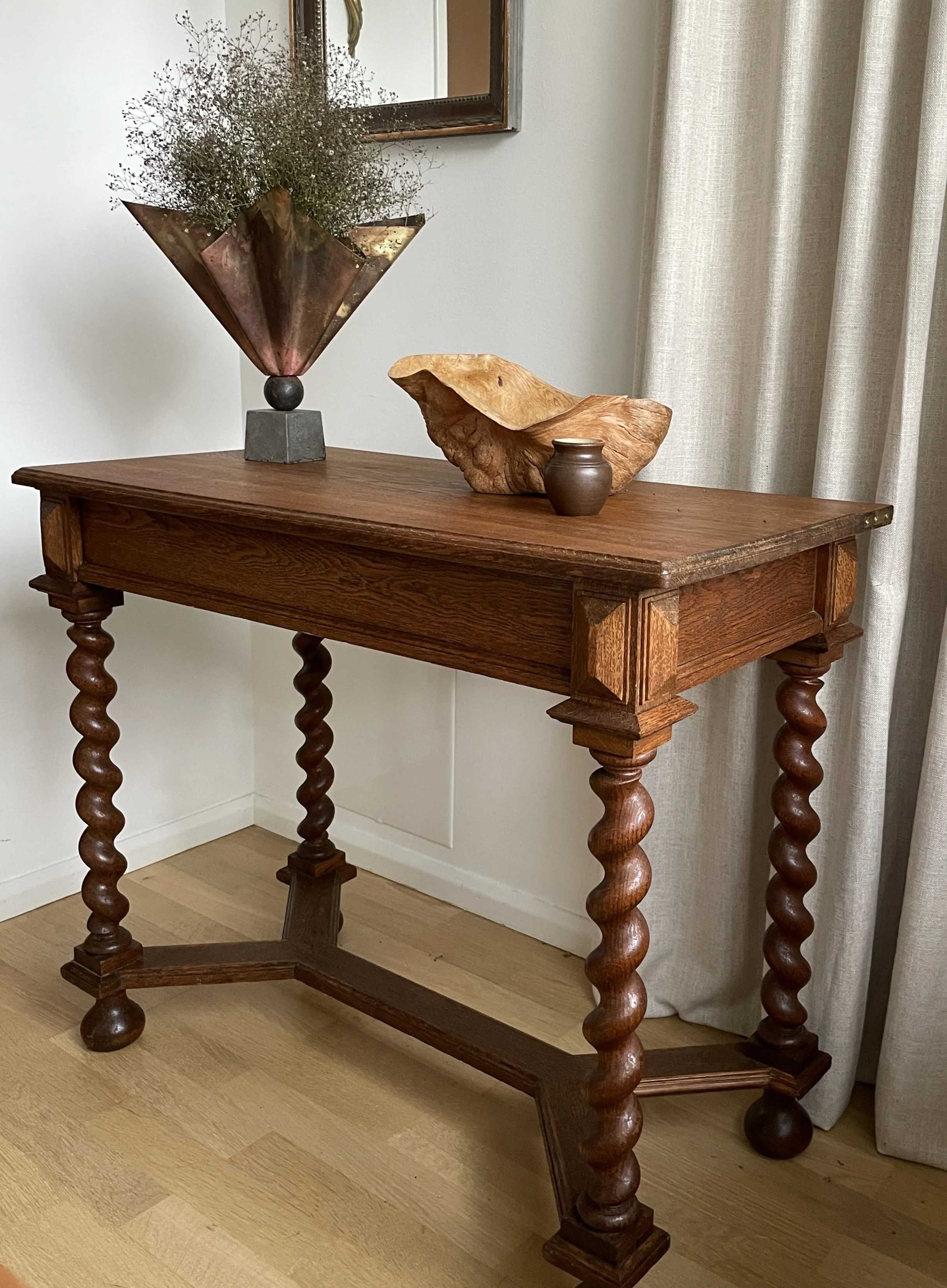 A beautiful side table in rich dark oak with turned legs. Perfect for your hallway or as a stylish side table in your living room. Great vintage condition with signs of use.